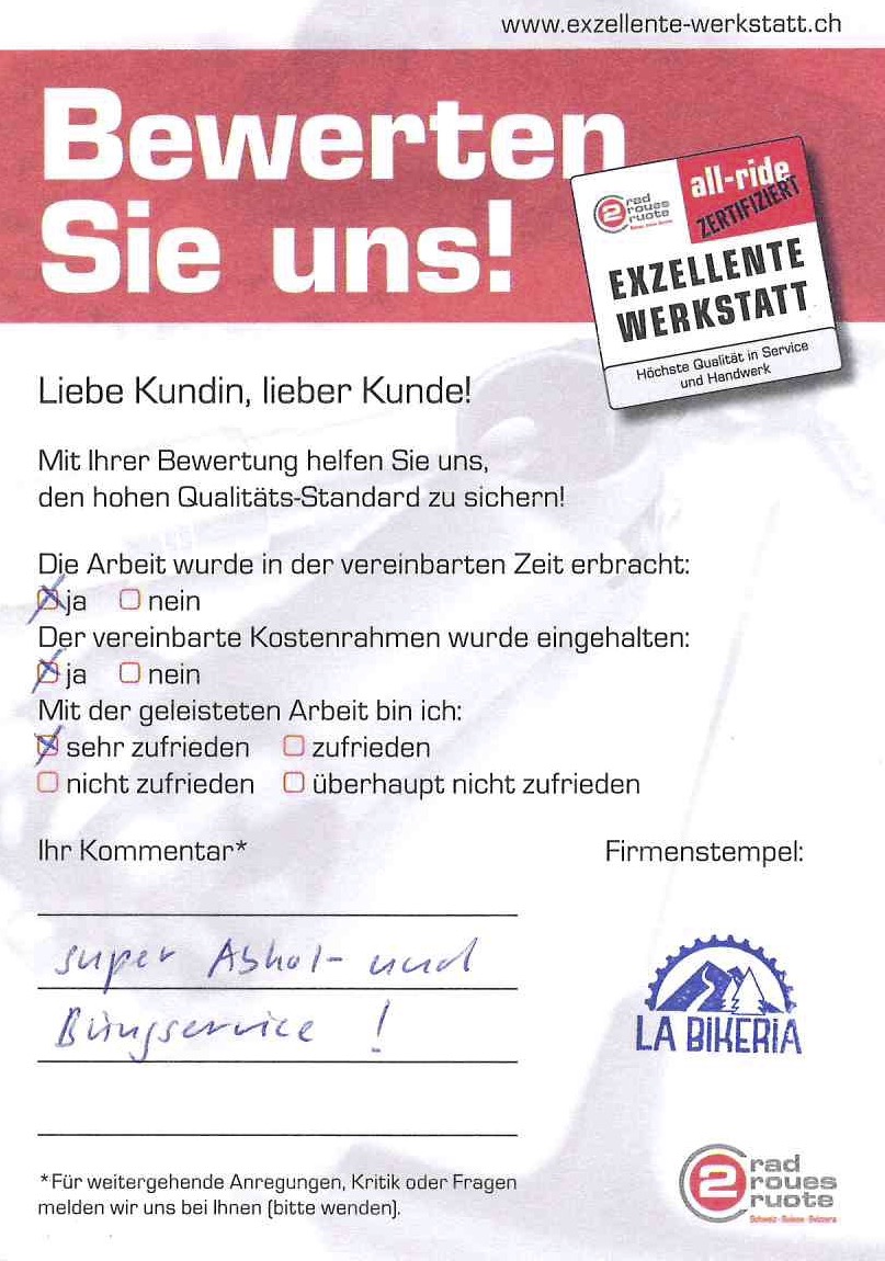 Wer sein Fahrrad bei LA BIKERIA gekauft hat, profitiert dauerhaft von unserem besonderen konditionen