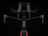 Einen ultraleichten Rahmen aus 800 Series OCLV Carbon, windschnittige Rohre mit Kammtail Virtual Foil-Profil (KVF), eine Speed Concept-Carbongabel mit aerodynamischem Profil, straßenglättendes IsoSpeed, integrierte Aufbewahrungslösungen für Verpflegung, Flüssigkeit und ein Pannenkit, einen drahtlosen elektronischen SRAM RED AXS 12fach-Antrieb mit SRAM AXS Blips-Schalthebeln, einen SRAM RED AXS-Powermeter, einen vollständig integrierten Lenker samt Vorbau, einen triathlonspezifischen Bontrager Hilo Pro-Carbonsattel für eine aggressive Aero-Sitzposition, zuverlässig zupackende Scheibenbremsen und aerodynamische Bontrager Aeolus RS